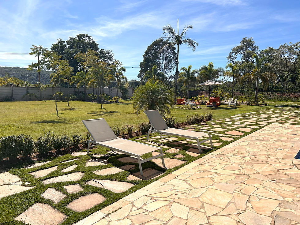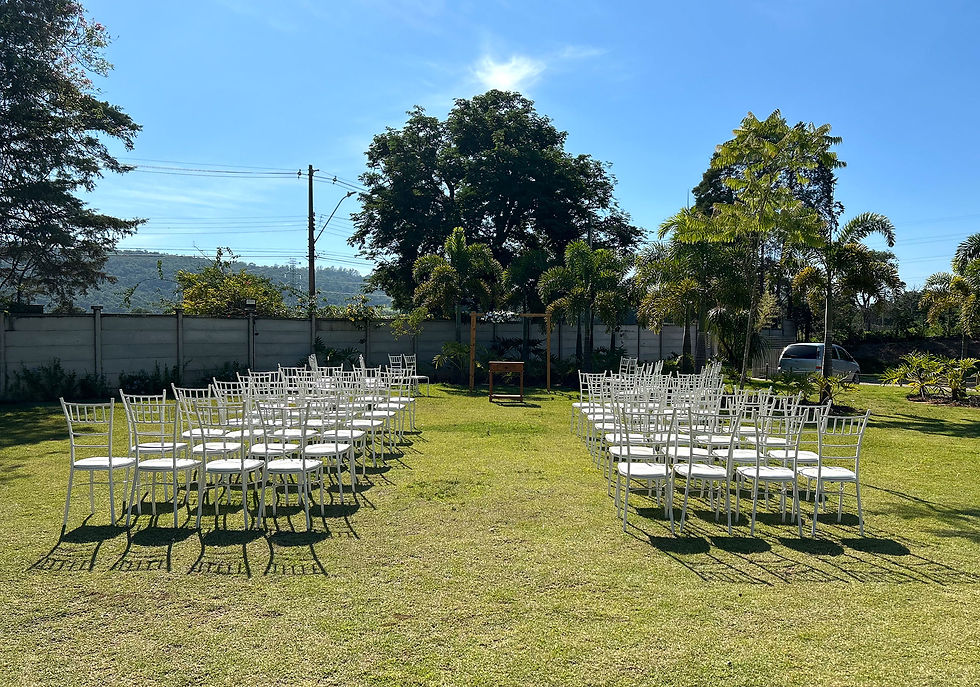 • Área externa aconchegante, com jardins amplos, perfeita para fotos e convivência